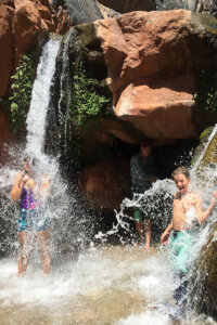 Grand Canyon rafting trips feature towering canyon walls, the exhilarating spray of whitewater, and spectacular starry skies, but one of my favorite things is the time spent at waterfalls. Almost every trip will find a way to visit at least one. Most of the waterfalls are hidden from view from the rafts, but don’t worry, your river guides know where to go!