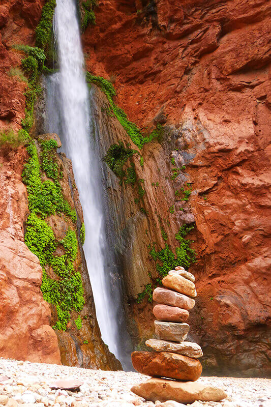 Grand Canyon rafting trips feature towering canyon walls, the exhilarating spray of whitewater, and spectacular starry skies, but one of my favorite things is the time spent at waterfalls. Almost every trip will find a way to visit at least one. Most of the waterfalls are hidden from view from the rafts, but don’t worry, your river guides know where to go!