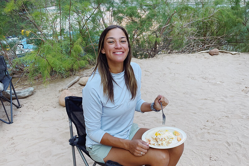 Oh, right! I’m sure you’re wondering about the bathroom situation, and I’m here to quash any fears you might have. As for #1, your guides will remind you that “the solution to pollution is dilution” – easy! By urinating in the river, we save the sensitive ecosystem from turning into a giant litter box. As for #2 (gasp!), there’s a plan for that, too. Introducing the Groover! This vault toilet makes for an easy setup. There will be handwashing stations (crucial, even when at the bottom of a canyon) and a private area with your groover. It essentially works as a porta-potty and makes for a good chuckle when the guides load them up every morning before leaving camp. The best part? You get a fresh one every day! And I can guarantee you won’t be complaining about the bathroom views.