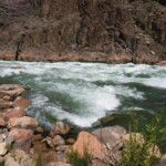Every day had new sights and adventures. The rock layers were constantly changing as we proceeded down the river. Sometimes the canyon was wide and other times quite narrow. The average speed of the river was 4 mph. Our motor added 4 thus 8 mph was the average speed. There are approximately 225 named rapids along our trip. Although, they were not spread out at one per mile. Sometimes they came in rapid succession followed by miles of calm water. Perhaps 10 could be considered serious with 4-5 being really serious. Even with the lesser ones, it was possible to get really wet. The front was the wettest and everyone took their turn. During the first days, it was cold up front and we wore full rain gear. Near the end when it was 100 degrees, up front with only a rain jacket and shorts was a sought after place. The large rafts eliminated almost all concern about their flipping, although, in some of the rapids, an individual could certainly get launched into the rapids.