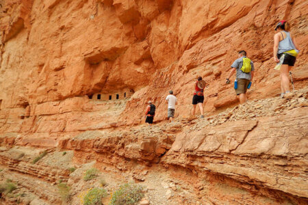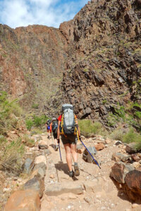Because of the difficulty of this mandatory hike out of the canyon, you must call us to book — online reservations are not allowed. We’ll want to talk to you, and everyone in your group, about your hiking experience, your current fitness level and routine, how to train and prepare for this hike, and any medical conditions that might affect your ability to get the most out of this experience. We do not recommend this trip for people with a history of heart problems, high susceptibility to heat-related illness or exercise-induced asthma. Other factors, including being out of shape, overweight, or a smoker, also may negatively impact your hike.