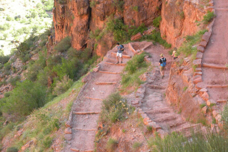 Bright Angel Trail winds itself up the Canyon walls. This trip does require a 8-mile uphill hike out of the Canyon.